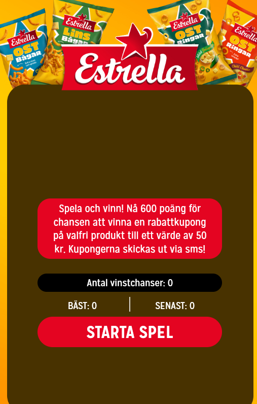Spela med Estrella och vinn rabattkupong på valfri produkt till värde 50kr Av site 21 april, 2026 Inga kommentarer Spela spel med Estrella, nå minst 600 poäng och var med om chansen att vinna rabattkupong på valfri produkt till värde av 50:-. Börja här